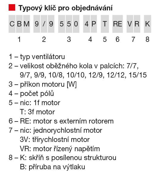 typový klíč pro objednávání | 4 polohy montáže pomocí mont. konzoly | speciální antivibrační upevnění motoru | dynamicky vyvážené oběžné kolo | |||