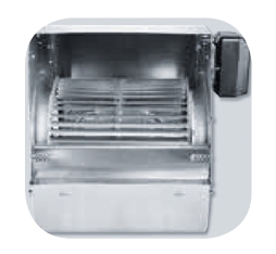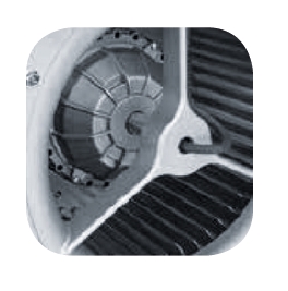 ![]() | Oběžné kolo Oběžné kolo je radiální, s dopředu zahnutými lopatkami. Oběžné kolo je z ocelového, galvanicky pozinkovaného plechu a je dynamicky vyváženo dle ISO 1940. | |