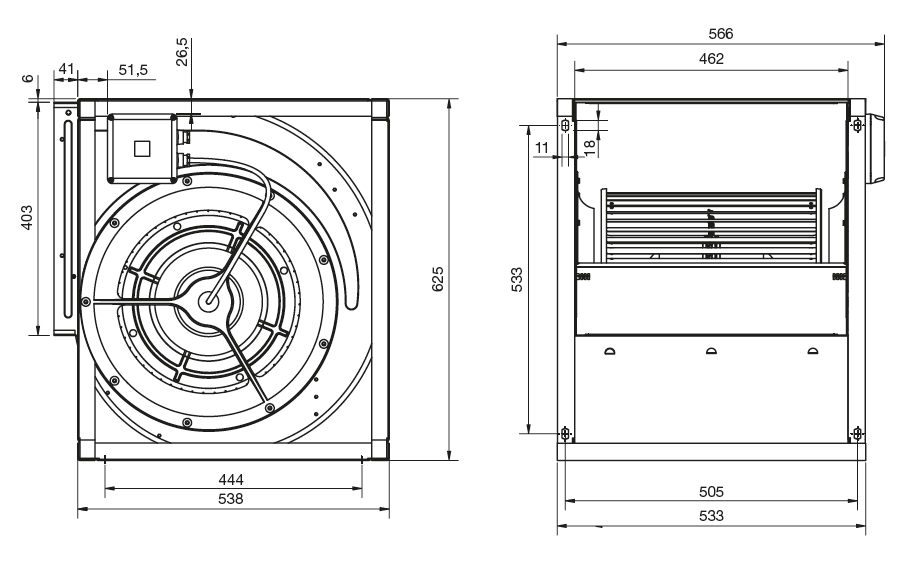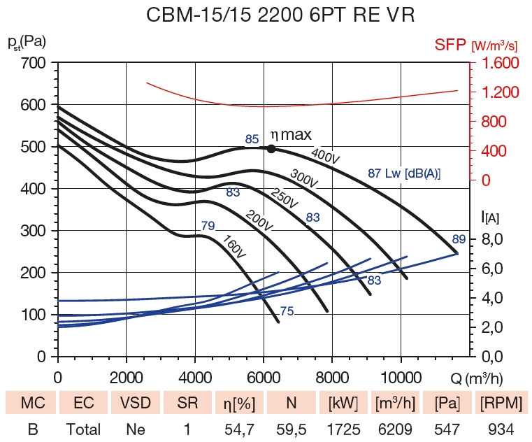 CBM-15/15 2200W 6PT RE VR K IP54 centrifugal fanSpeciální radiální ventilátory