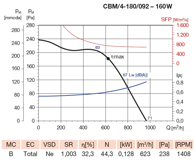 CBM/4-180/092-160W special centrifugal fanSpeciální radiální ventilátory
