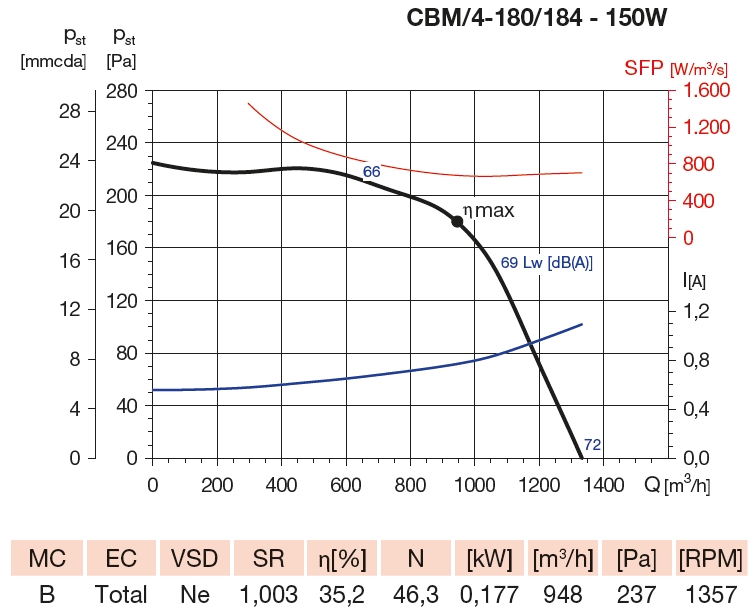 CBM/4-180/184-150W special centrifugal fanSpeciální radiální ventilátory