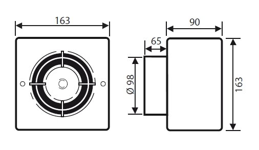 ![]() | Skříň je z nárazuvzdorného plastu, barva je bílá. Skříň je určená k montáži na stěnu. Ve výtlaku ventilátoru je zpětná klapka. | |
