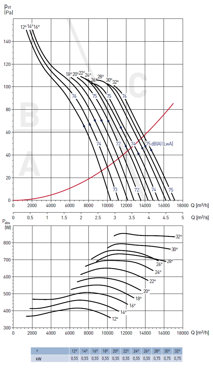 ![]() | Oběžné kolo Oběžné kolo má lopatky z Al slitiny a náboj z ocelového plechu. Oběžné kolo je staticky i dynamicky vyváženo. Nastavení úhlu listů oběžného kola je provedeno výrobcem. Počet lopatek 3, 6 nebo 9. | |