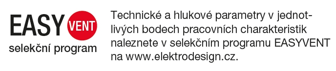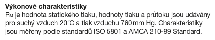 ![]() | Hluk Akustický tlak emitovaný ventilátorem je uveden v tabulce technických parametrů, je měřen ve volném akustickém poli ve vzdálenosti 1,5 m od sání a výtlaku. Hodnoty akustických výkonů jsou v samostatné tabulce. | |