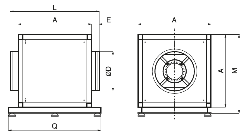 ![]() | Skříň Skříň je z ocelového, galvanicky pozinkovaného plechu sendvičového provedení. Pro provádění revizí a čištění je možno jednotlivé panely sejmout. Ventilátor je uložen ve skříni na odpružených profilech, aby se omezil přenos vibrací. Na skříni jsou přišroubována kruhová hrdla pro připojení flexibilních hadic nebo kruhového potrubí. Jednotlivé panely jsou zaměnitelné za panel s výtlačným hrdlem. | |