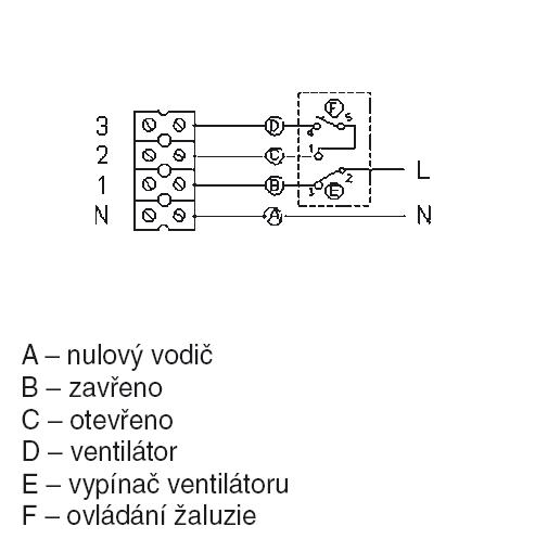 • 2 tlačítka pro zapnutí/vypnutí ventilátoru a pro otevření/zavření žaluzie