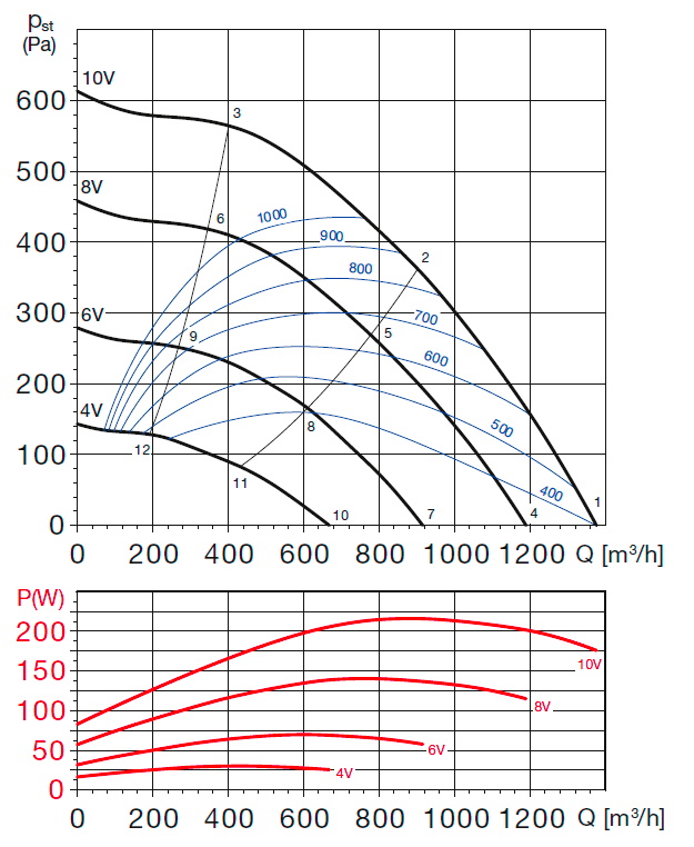 ![]() | Hluk Hluk emitovaný ventilátorem je uveden v tabulkách. Hodnoty jsou měřeny ve vzdálenosti 4 m na straně výtlaku v horizontálním směru. | |