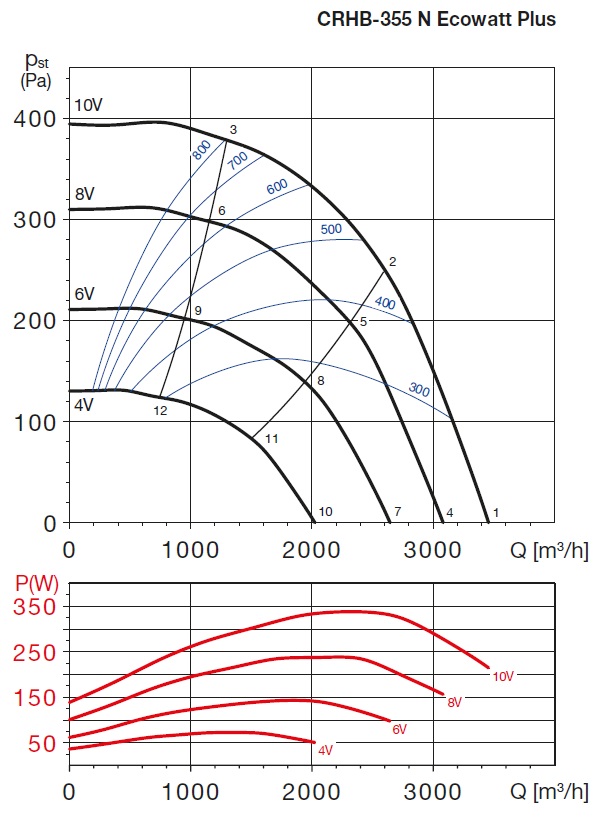 ![]() | Varianty CRHB-N Ecowatt Plus – systém je založen na použití moderních prvků pro DCV systémy (demand controlled ventilation – větrání řízené skutečnou potřebou). Jedná se o ventilátory s mikroprocesorovou regulací, vestavěným diferenciálním čidlem tlaku, EC motorem (elektronicky komutovaným), elektricky ovládanými odvodními talířovými ventily, čidly CO2, čidly relativní vlhkosti, programovatelnými časovými spínači pro ovládání odvodních talířových ventilů. Regulace umožňuje řízení přes Modbus RTU. CRHB-N Ecowatt – jednodušší provedení ventilátoru s EC motorem, ventilátor neobsahuje modul řízení na konstantní tlak nebo průtok. Ventilátor je řízen pouze řídicím napětím 0–10 V. | |