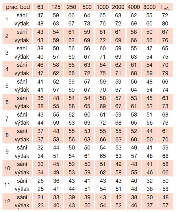 ![]() | Hluk Hluk emitovaný ventilátorem je uveden v tabulkách. | |