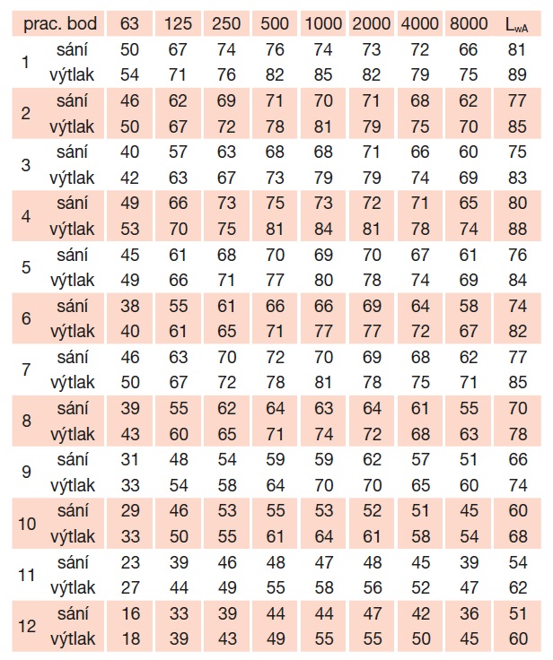 ![]() | Hluk Hluk emitovaný ventilátorem je uveden v tabulkách. | |
