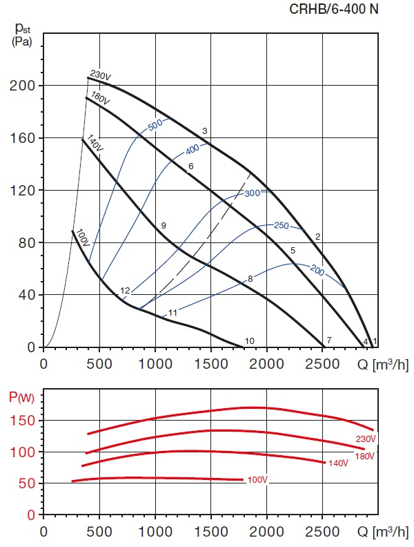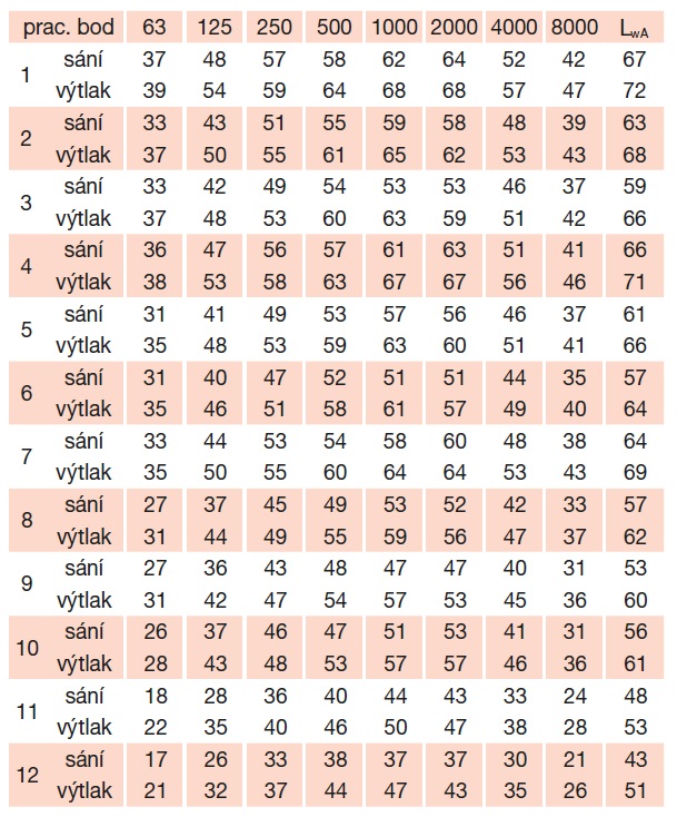 * akustický tlak je měřen ve vzdálenosti 3 m v bodě 2 výkonové křivky (sání/výtlak)
