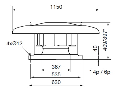 CRHT/6-450 N IP54 roof mounted fanStřešní ventilátory