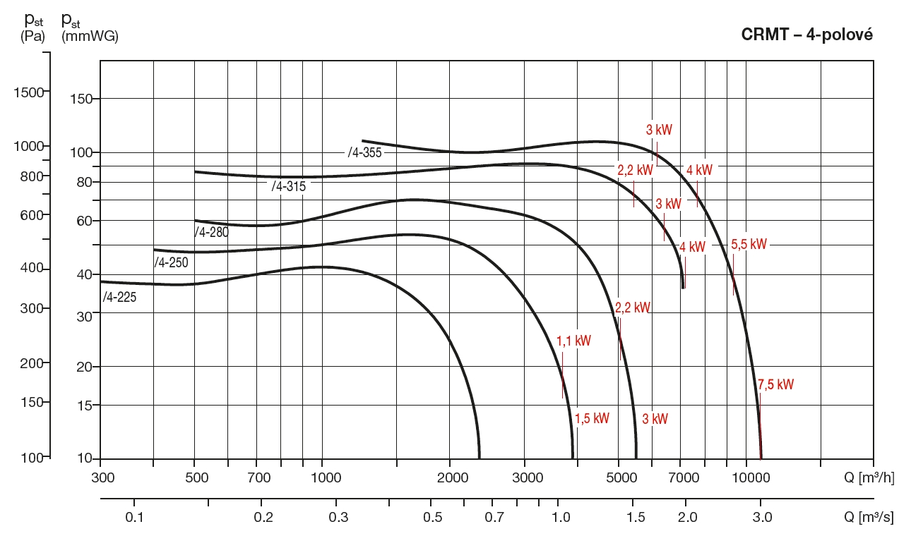 CRMT/4-250/100-1,5 IP55 centrifugal fanRadiální ventilátory