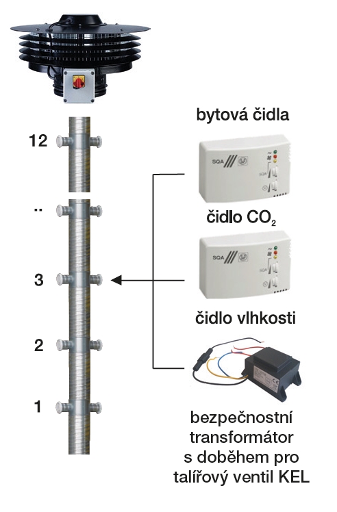 * akustický tlak je měřen ve vzdálenosti 3 m, v pracovním bodě ve středu charakteristiky ventilátoru