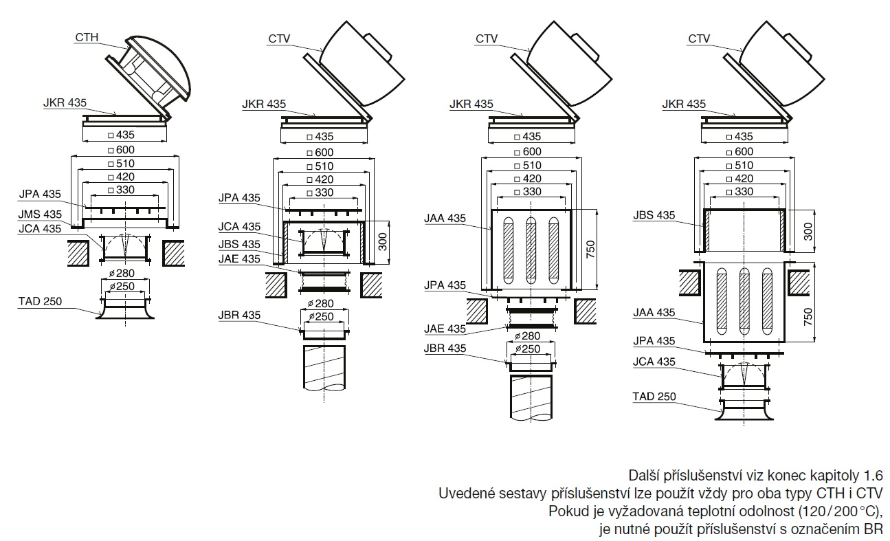 ![]() | Skříň Skříň je konstruována u typu CTH pro horizontální výfuk vzdušiny, u CTV pro vertikální. Podstavec ventilátoru je z ocelového pozinkovaného plechu, galvanicky pokovené jsou i držáky, mřížka a šrouby. Stříška a skříň ventilátoru je z Al plechu. Motor ventilátoru je uložen mimo proud vzdušiny. Ventilační okruh motoru je oddělený, používá vlastní radiální oběžné kolo. Po obvodu stříšky je u ventilátoru CTH ventilační spára, u typu CTV je ventilace motoru vyvedena ze strany skříně. | |
