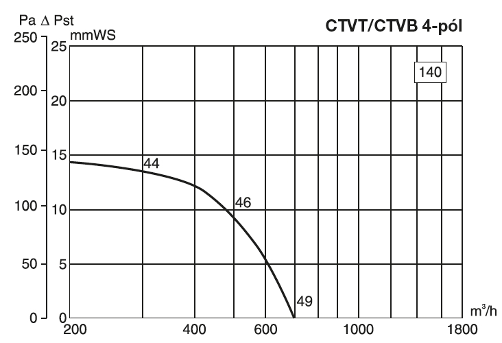![]() | Hluk Hluk emitovaný ventilátorem je uveden v tabulkách. Hodnoty LpA na výkonových charakteristikách jsou měřeny ve volném poli na straně sání ve vzdálenosti 1,5 m. | |