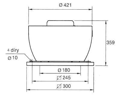 ![]() | Skříň Skříň je konstruována u typu CTH pro horizontální výfuk vzdušiny, u CTV pro vertikální. Podstavec ventilátoru je z ocelového pozinkovaného plechu, galvanicky pokovené jsou i držáky, mřížka a šrouby. Stříška a skříň ventilátoru je z Al plechu. Motor ventilátoru je uložen mimo proud vzdušiny. Ventilační okruh motoru je oddělený, používá vlastní radiální oběžné kolo. Po obvodu stříšky je u ventilátoru CTH ventilační spára, u typu CTV je ventilace motoru vyvedena ze strany skříně. | |
