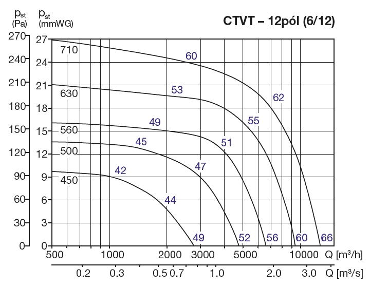 | otáčky [min-1] | průtok (0 Pa) [m3/h] | příkon [W] | napětí [V] | proud [A] | max. teplota [°C] | akust. tlak - sání [dB(A)] | akust. tlak - výtlak [dB(A)] | hmotnost [kg] | velikost příslušenství [mm] | regulátor |
