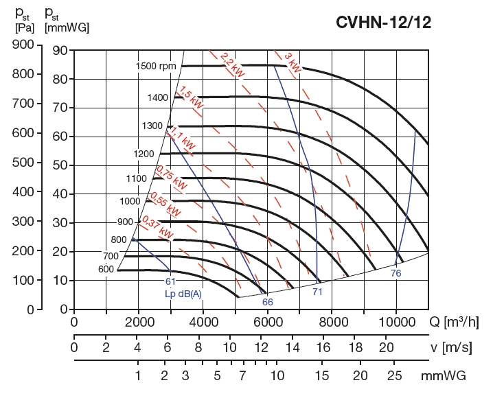 typový klíč pro objednání | návrh ventilátoru softwarem EASYVENT | příklad výběru ventilátorů CVHN | kompaktní design s motorem uvnitř skříně | |||