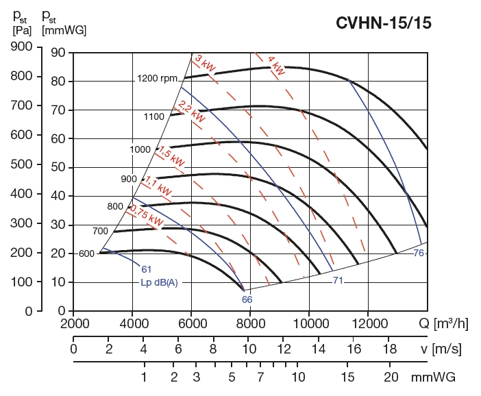 typový klíč pro objednání | návrh ventilátoru softwarem EASYVENT | příklad výběru ventilátorů CVHN | kompaktní design s motorem uvnitř skříně | |||