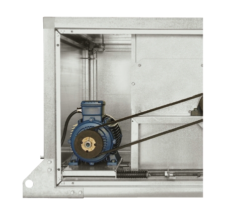![]() | Motor Motor je asynchronní třífázový 230/400 V nebo 400 V dle výkonu. Řemenový převod s automatickým napínáním řemenu pro bezúdržbový provoz. Pracovní teplota je pro případ požáru 400 °C po dobu 2 h pro OTK, trvalá pracovní teplota 100 °C. Na zvláštní objednávku lze dodat dvouotáčkové motory 4/6 a 4/8 pólů. Krytí IP55, třída izolace F. | |