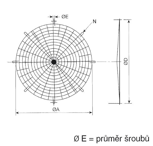 ![]() | Informace • pro axiální ventilátory, lakováno • stabilní provedení pro TGT, THGT • vzdálenost mezi kruhy je 8 mm • při použití u ventilátorů nebo jiných rotujících strojních částí je třeba respektovat požadavky norem ČSN EN 953+A1, ČSN EN ISO 13857 | |