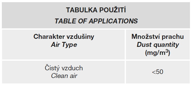 tabulka použití | izolátory chvění | doporučené příslušenství |