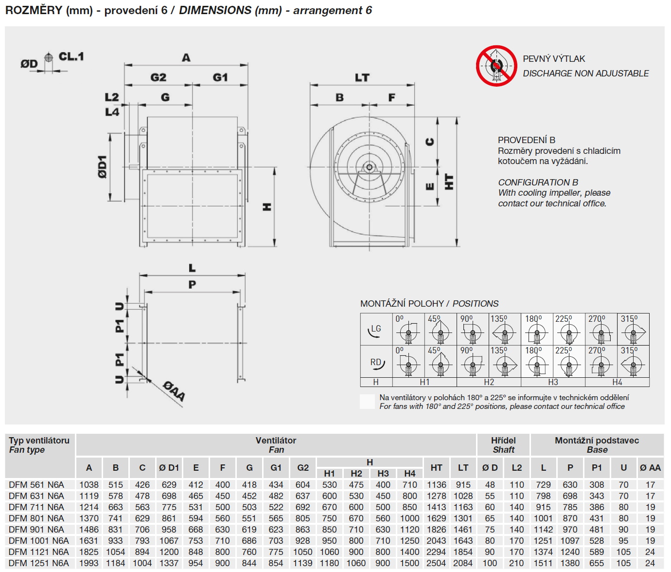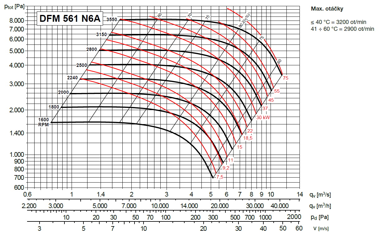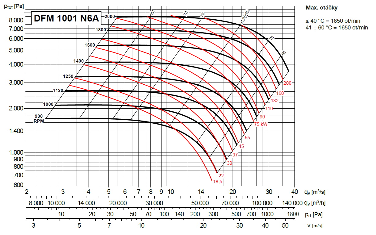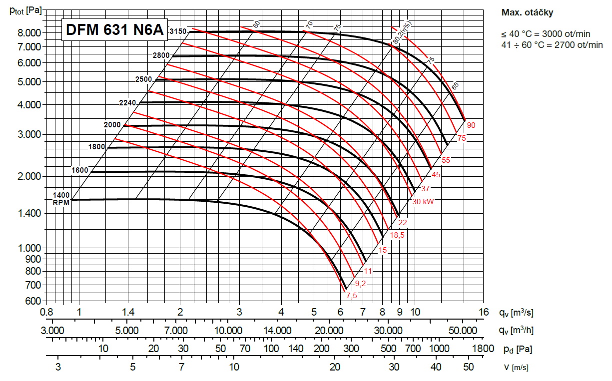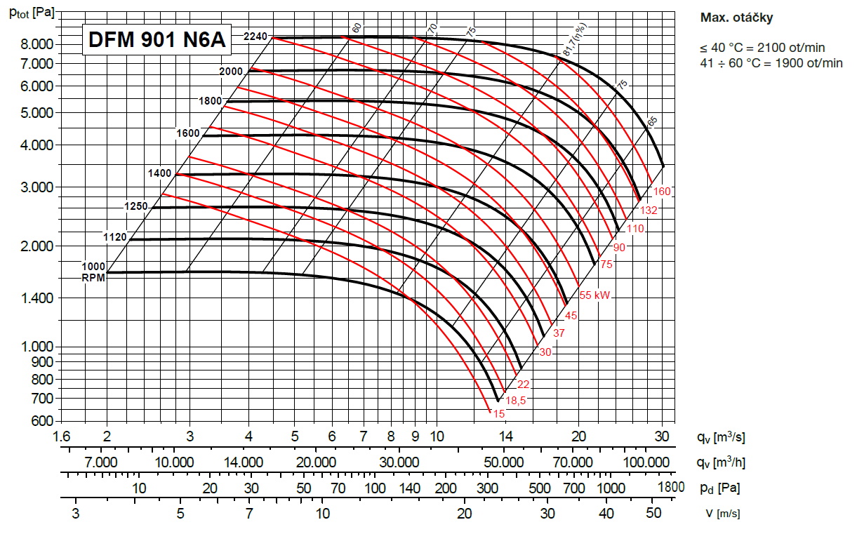 technické parametry | základový rám provedení 6 | velikost motoru provedení 19 | oběžné kolo s dozadu zahnutými lopatkami | |||