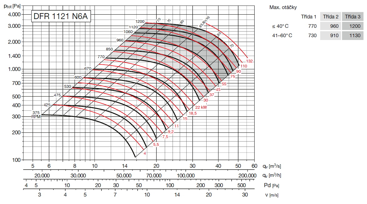 ![]() | Informace Jednostranně sací radiální ventilátor s motorem napřímo. Vyroben z ocelového plechu chráněného kataforezním základním nátěrem a polyuretanovým lakem. Navržen pro trvalý provoz, teplota přepravované vzdušiny od -20 °C do +60 °C. Motory: 2, 4 nebo 6pólové, IE 3* s vysokou účinností, třífázové provedení 230/400 V, 50 Hz do velikosti motoru 132. Pro velikosti motoru nad 132 400/690 V, 50 Hz. Krytí IP55, izolace třídy F. Všechny motory lze regulovat FM. Na vyžádání: • nerez AISI304, AISI316, CORTEN, CREUSABRO 4800 a další materiály • 60 Hz provedení • lakované v různých barvách RAL • ventilátor bez podstavce (provedení 5) do velikosti motoru 160 • vysokoteplotní provedení (až do 220 °C, provedení B s chladicím kotoučem), do 300 °C provedení 8 nebo 12 • ventilátor s pohonem na spojku (provedení 8) nebo na řemen (provedení 12) • revizní dvířka, odvod kondenzátu, ucpávka hřídele, antivibrační sada, nátrubek pro odvod kondenzátu, ochranná mřížka na sání, plynotěsné provedení, provedení s vyšší otěruvzdorností, svařovaná spirální skříň, tepelně izolovaná spirální skříň ATEX provedení: Na vyžádání možnost dodání v nevýbušném provedení podle směrnice ATEX pro třífázové motory a pro okolní atmosférické podmínky definované normou EN 14986. Rozsah teplot -20 °C až +60 °C, absolutní tlak 0,8 až 1,1 bar. • Plyn: 2G IIB T2-T3-T4, motor ExdIIB nebo ExeII 2G IIB+H2 T2-T3-T4, motor ExdIIC 3G IIB T2-T3-T4, motor ExnA (pouze pro zónu 3G) 3G IIB+H2 T2-T3-T4, motor ExnA (pouze pro zónu 3G) • Nevodivý prach: 2D IIIB T125°C-T135°C-T195°CT295°C 3D IIIB T125°C-T135°C-T195°CT295°C • Vodivý prach (povinný motor IP65): 2D IIIC T125°C-T135°C-T195°CT295°C 3D IIIC T125°C-T135°C-T195°CT295°C | |