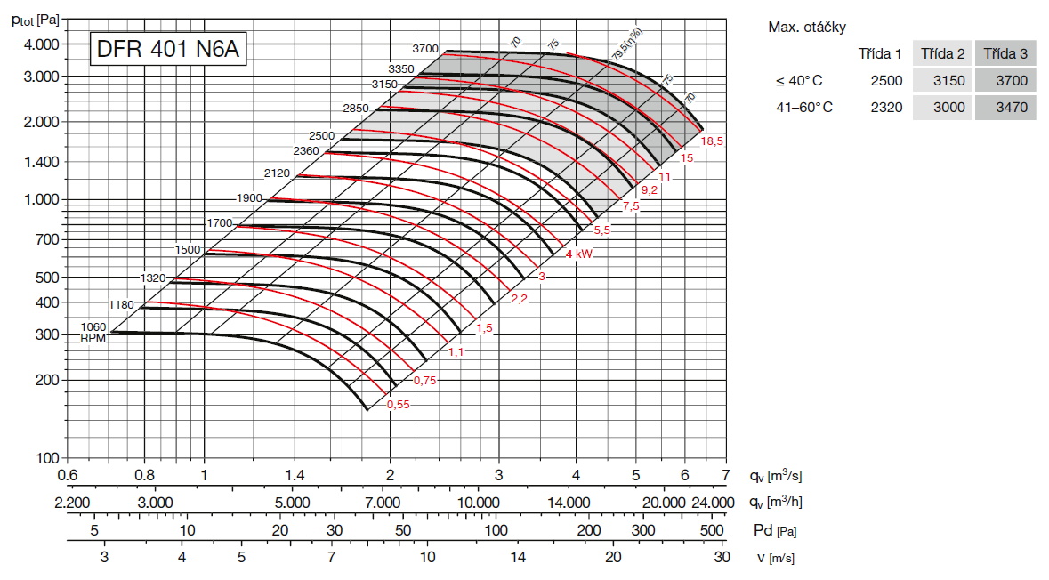 | max. průtok vzduchu [m3/h] | příkon motoru [kW] | hmotnost* [kg] | moment setrvačnosti** [kgm2] |