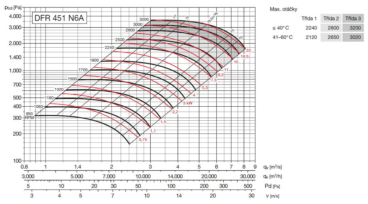 | max. průtok vzduchu [m3/h] | příkon motoru [kW] | hmotnost* [kg] | moment setrvačnosti** [kgm2] |