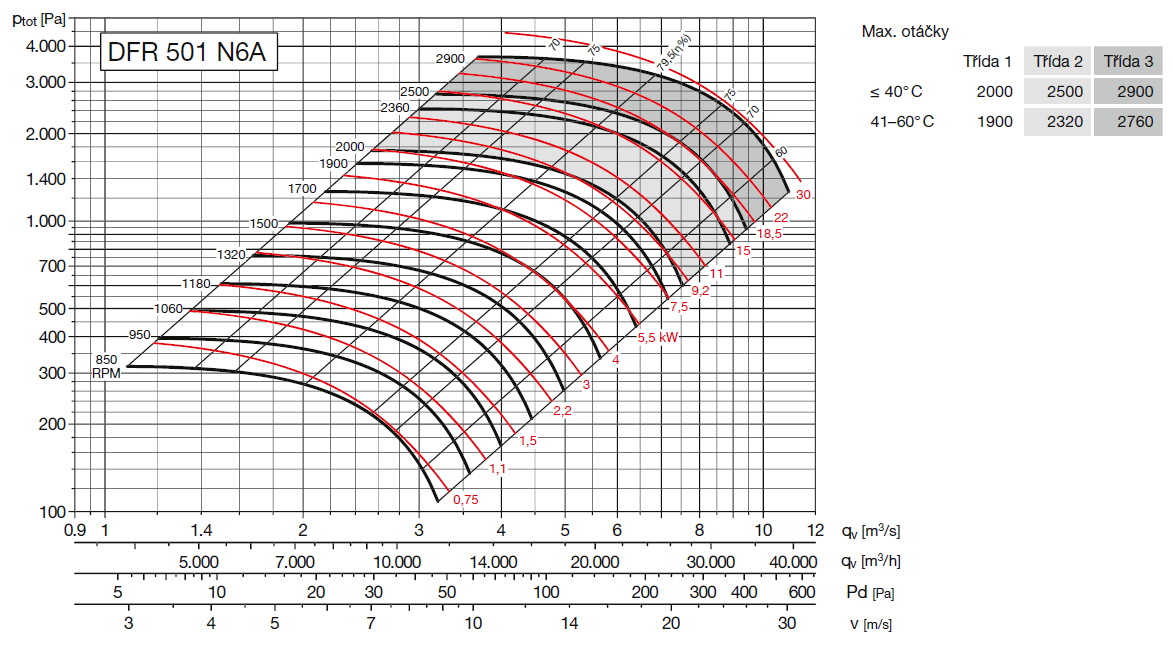 | max. průtok vzduchu [m3/h] | příkon motoru [kW] | hmotnost* [kg] | moment setrvačnosti** [kgm2] |