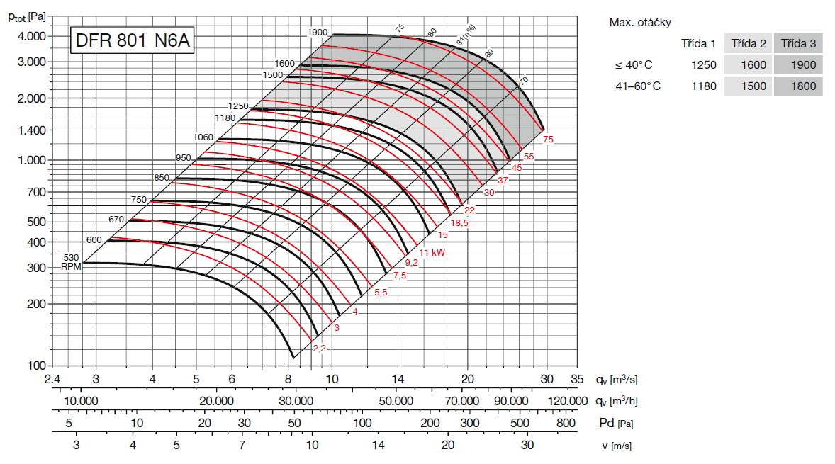 | max. průtok vzduchu [m3/h] | příkon motoru [kW] | hmotnost* [kg] | moment setrvačnosti** [kgm2] |