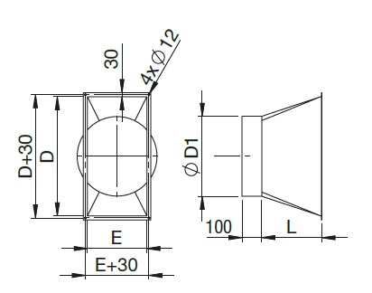 ![]() | Informace • přechodový díl na kruhové potrubí • šířka příruby 30 mm | |