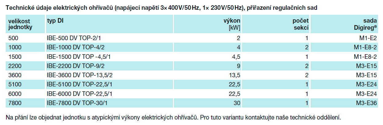 * při nominálním průtoku vzduchu, te = -12 °C/90 % r.v., ti = 22 °C/50 % r.v., te = 35 °C/35 % r.v. (LÉTO); ** v závislosti na konkrétním provedení. Výkon vodního chladiče DCC pro te = 35 °C/35 % r.v., tw = 6/12 °C. Výkon vodního ohřívače DCA pro te = 10 °C, tw = 80/60 °C. Výkon vodního ohřívače DCB pro te = 10 °C, tw = 45/35 °C. Výkon přímého výparníku DX pro chladivo R410A, te = 35 °C/35 % r.v., tvyp= 6 °C.