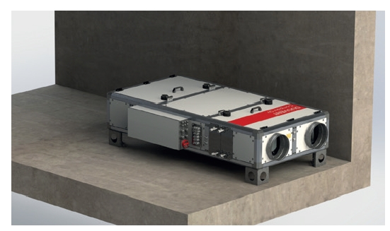 ![]() | Skříň Patentovaný modulární systém ISOSTREAM® se stěnovými panely tloušťky 45 mm, které jsou vyrobeny z ocelového pozinkovaného plechu s vnějším lakováním v odstínu RAL 9002 (šedobílá). Panely jsou uvnitř vyplněné zvukovou a tepelnou izolací z nehořlavé skelné minerální vlny. Pro usnadnění servisu je skříň jednotky vybavena otevíratelnými dveřmi se zámky nebo plně snímatelnými panely. Rám jednotky je vyroben z hliníkových profilů, stěnové panely jsou do rámu přišroubovány. Vývody kondenzátu od rekuperačního výměníku a chladiče jsou umístěny vždy ve spodním panelu jednotky a jsou připravené pro napojení protizápachového sifonu. Na přání zákazníka je možné plášť jednotky opatřit atypickou povrchovou ochranou s vyšší korozní odolností. | |