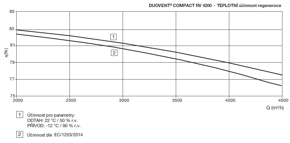 * Při jmenovitém průtoku vzduchu, te = -12 °C / 90 % r.v., ti = 22 °C / 50 % r.v., te = 32 °C / 40 % r.v. (LÉTO), teplotní rotor. Výkon vodního chladiče DCC pro te = 32 °C / 40 % r.v., tw = 6/12 °C. Výkon vodního ohřívače DCA pro te = 8 °C, tw = 80/60 °C. Výkon vodního ohřívače DCB pro te = 8 °C, tw = 45/35 °C. Výkon přímého výparníku DX pro chladivo R410A, te = 32 °C / 40 % r.v., tvyp= 6 °C.