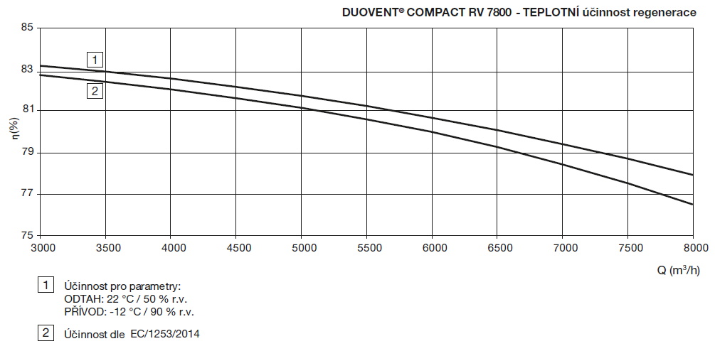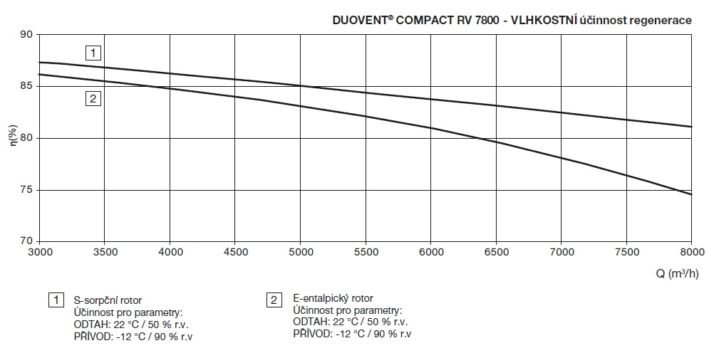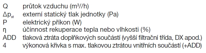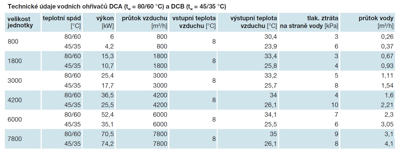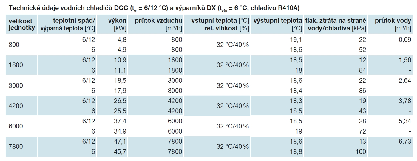 * Při jmenovitém průtoku vzduchu, te = -12 °C / 90 % r.v., ti = 22 °C / 50 % r.v., te = 32 °C / 40 % r.v. (LÉTO), teplotní rotor. Výkon vodního chladiče DCC pro te = 32 °C / 40 % r.v., tw = 6/12 °C. Výkon vodního ohřívače DCA pro te = 8 °C, tw = 80/60 °C. Výkon vodního ohřívače DCB pro te = 8 °C, tw = 45/35 °C. Výkon přímého výparníku DX pro chladivo R410A, te = 32 °C / 40 % r.v., tvyp= 6 °C.
