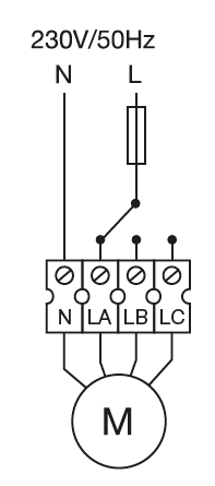 ![]() | Motor Motor je tříotáčkový asynchronní s rozběhovým kondenzátorem. Motor má tepelnou ochranu proti přehřátí. Max. provozní teplota okolí je 40 ˚C. Provedení s dvojitou izolací, krytí IP44. | |