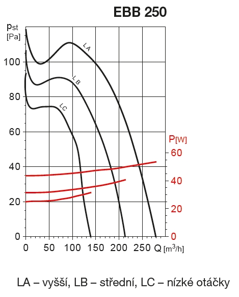 ![]() | Hluk Hluk emitovaný ventilátorem je měřen ve vzdálenosti 1,5 m v ose ventilátoru na straně sání. | |