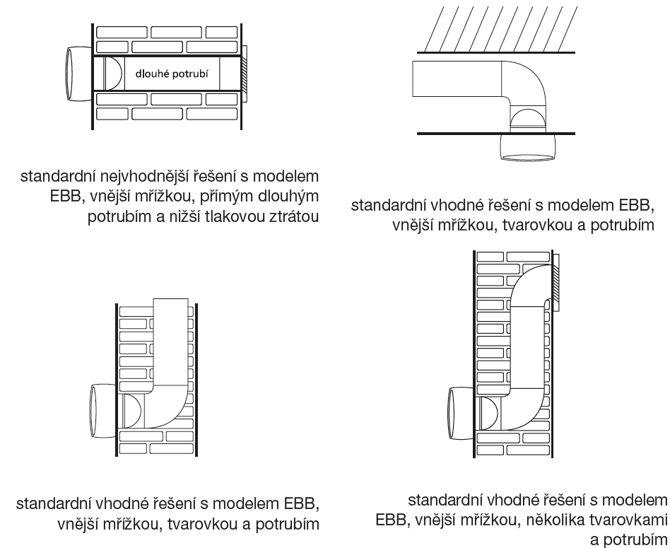 příslušenství k jednotlivým typům | vhodná řešení montáže | radiální oběžné kolo | detail zpětné klapky |