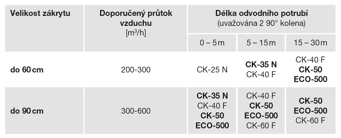 ![]() | Montáž Montáž se provádí do zákrytu s ohledem na velikost zákrytu a délku odvodního potrubí - viz tabulka. | |