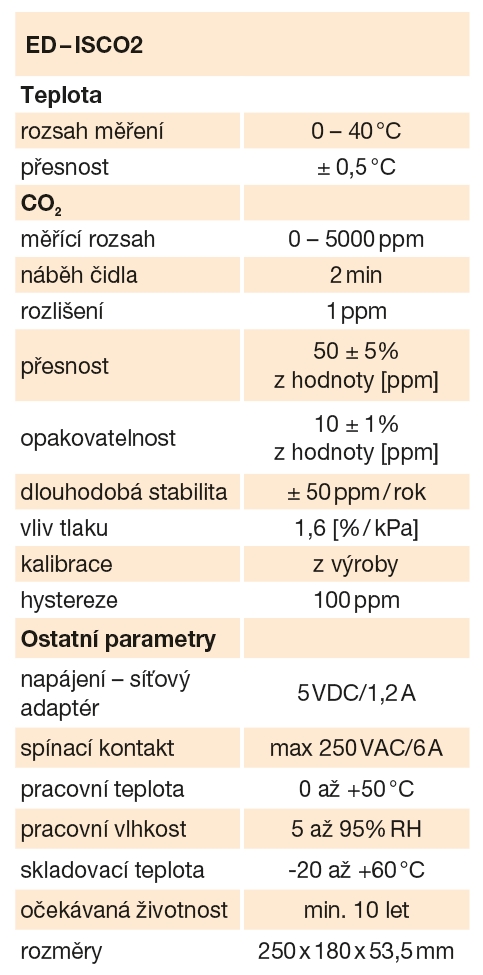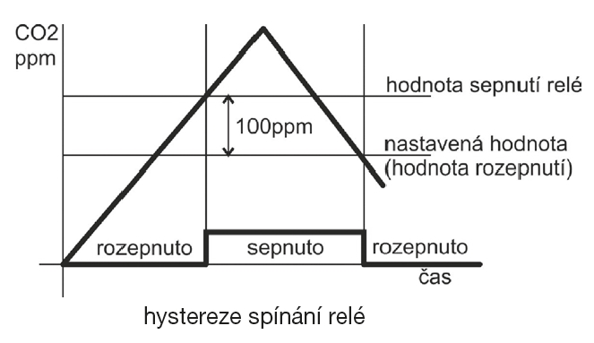 hystereze spínání relé | nastavení požadované koncentrace CO2 | podrobné technické parametry |