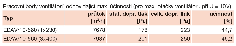 * na výtlačné straně ventilátoru, v bodě s maximální účinností, U = 10 V