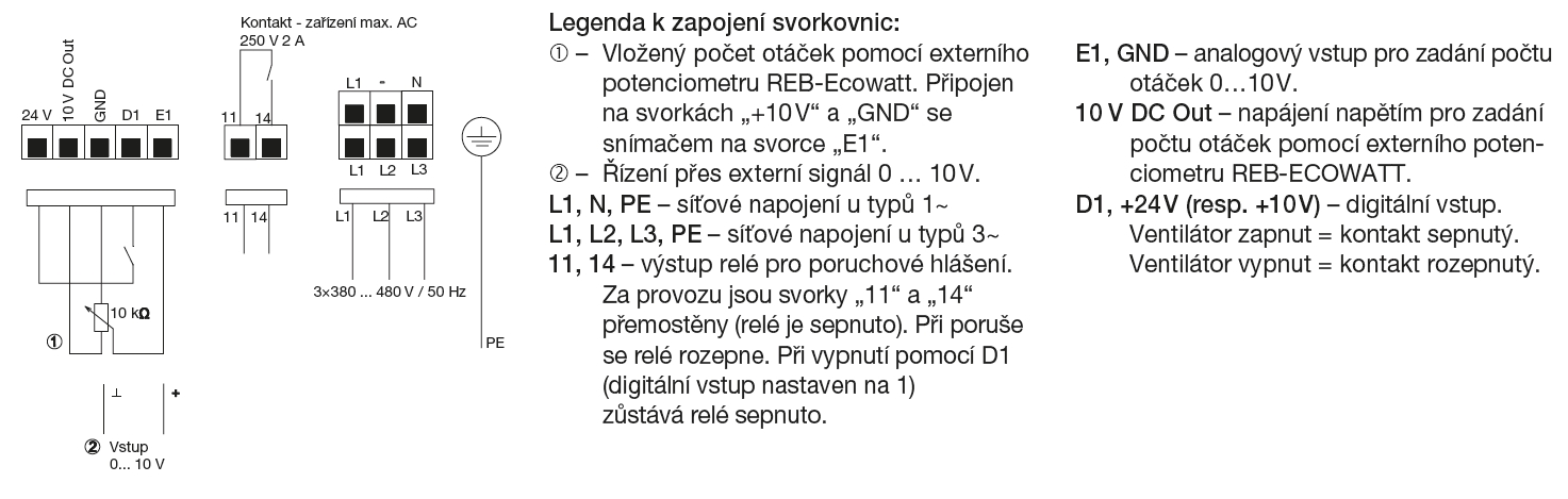 * štítková hodnota motoru; ** N - třída energetické účinnosti dle ErP2015/aktuální; *** při maximálních otáčkách ventilátoru ve vzdálenosti 3 m, bez reflexní složky, směrový činitel Q = 2, na straně výtlaku