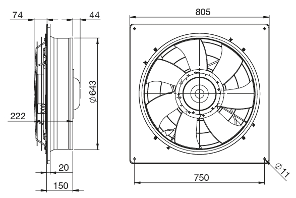 EDAV/10-630 Ekonovent axial fan with EC motorAxiální ventilátory IP54