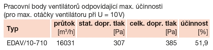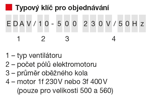 typový klíč pro objednávání | pracovní body ventilátoru odpovídající max. účinnosti |