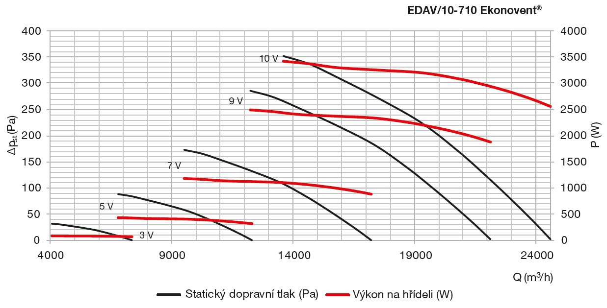 * na výtlačné straně ventilátoru, v bodě s maximální účinností, U = 10 V