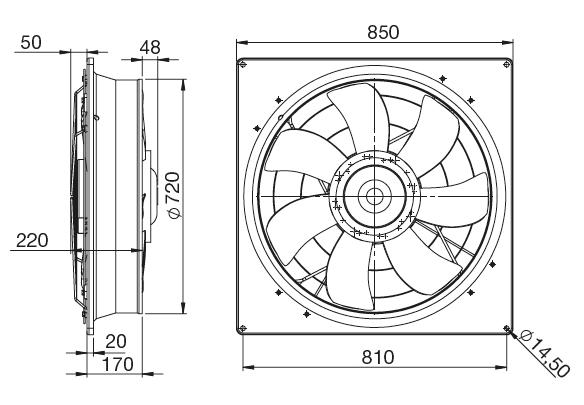 EDAV/10-710 Ekonovent axial fan with EC motorAxiální ventilátory IP54