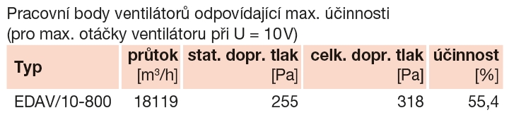 typový klíč pro objednávání | pracovní body ventilátoru odpovídající max. účinnosti |